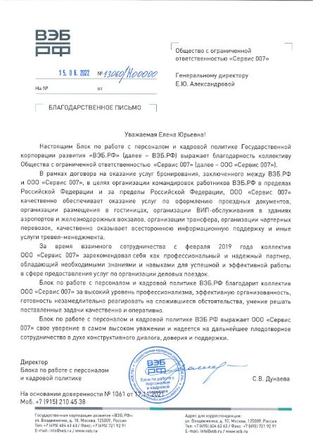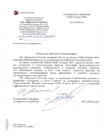 «За время взаимного сотрудничества с февраля 2019 года коллектив «СЕРВИС 007»